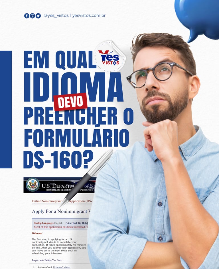 Uma dúvida muito comum entre nossos clientes é: “Devo preencher o formulário DS-160 em português ou inglês?” Essa questão surge com frequência, então vamos esclarecer de uma vez por todas como proceder.